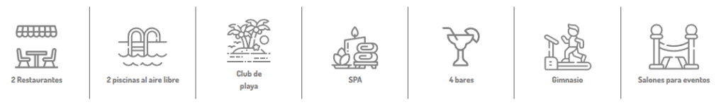 • Experiencia Gastronómica Superior: Deleita tu paladar en nuestros 2 restaurantes gourmet y disfruta de cócteles de autor y bebidas premium en cualquiera de nuestros 4 bares. Cada bocado y sorbo es una celebración.