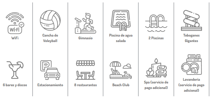 Entretenimiento para Todos: Desde un Kids Club para los más pequeños hasta shows nocturnos y una discoteca para los adultos, siempre hay algo emocionante que hacer. Además, contamos con canchas de tenis y un completo gimnasio.